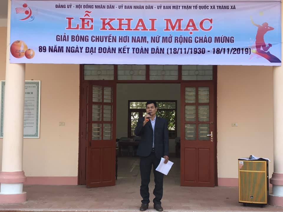 Ngày 8/11/2019 UBND xã Tràng xá tổ chức giải bóng chuyền hơi nam, nữ mở rộng chào mừng 89 năm ngày đại đoàn kết toàn dân. Phong trào văn hóa thể thao trên địa bàn xã đang phát triển mạnh, tông qua các giải đấu với tinh thần đoàn kết, rèn luyện sức khỏe, giao lưu với các đơn vị bạn nhằm học hỏi, cùng nhau mạnh khẻ đoàn kết, nâng cao đời sống văn hóa tinh thần ở khu dân cư, đẩy lùi các tệ nạn xã hội./.