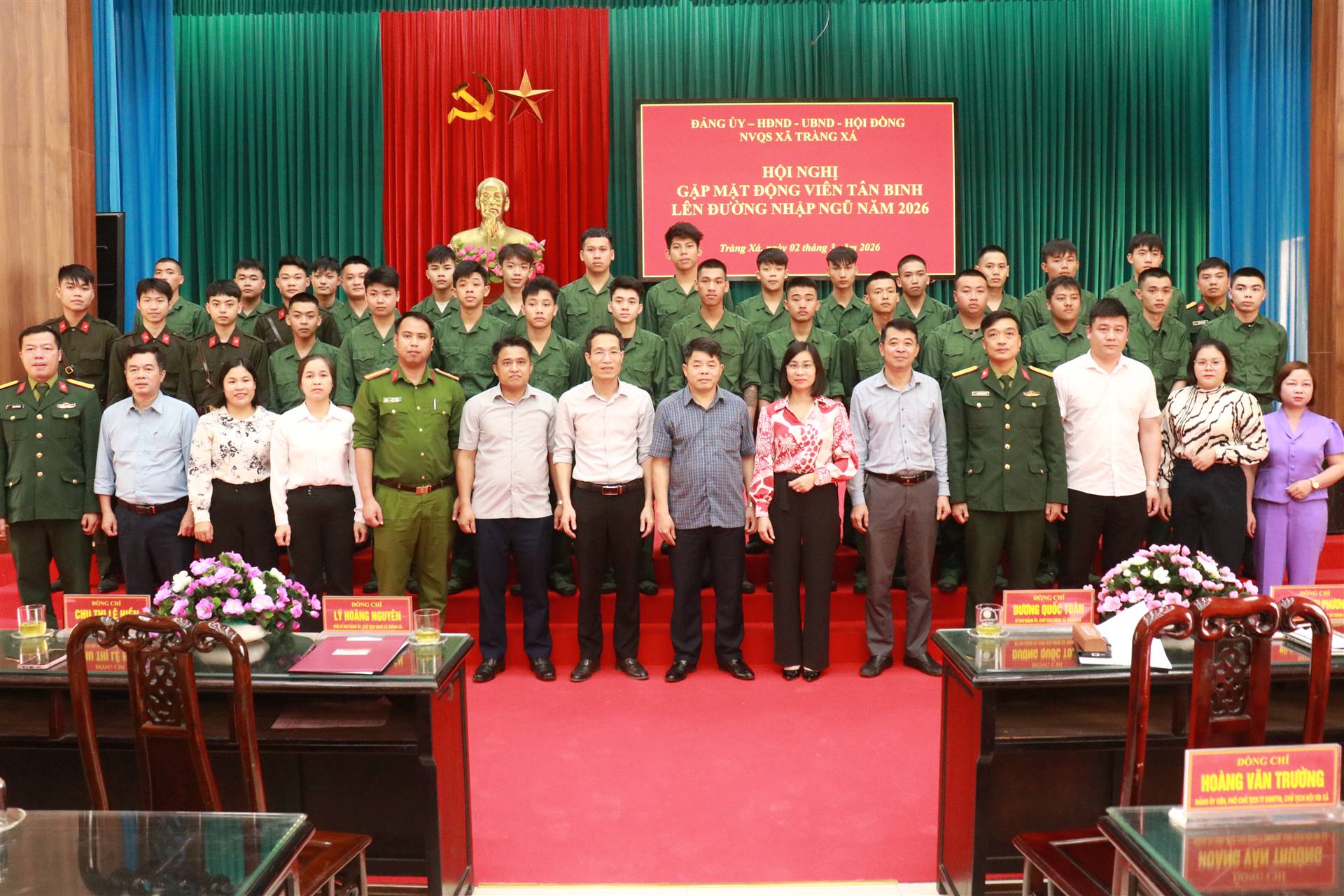 Chiều ngày 02/3/2026, Đảng ủy – HĐND – UBND – Hội đồng nghĩa vụ Quân sự xã Tràng Xá đã tổ chức Hội nghị gặp mặt, động viên tân binh lên đường nhập ngũ năm 2026.